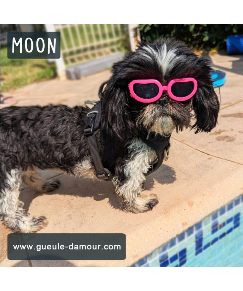 Avec la petite tête de ma york et son caractère espiègle je redoutais qu'elle me les vire vite fait. Et bien pas du tout ! Elle n'a même pas essayé. Il faut dire qu'avec la possibilité de bien adapter à sa tête ces lunettes lui vont à merveille.