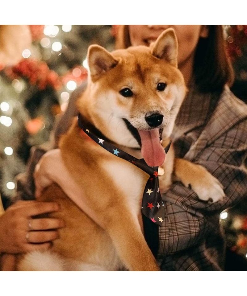 Cravate festive pour chien et chat - noire avec petites étoiles multicouleurs